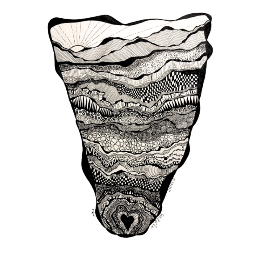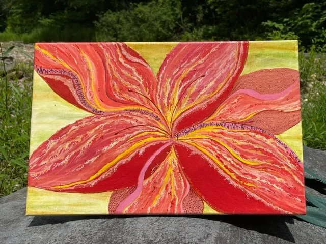 Most days, however, you will find her beside a river, appreciating the juxtaposition of her slow, verses the rivers rush, being grateful for encounters with wildlife, and collecting the history and treasure that flow from just upstream. She cherishes the colors of rocks, the greens of the woods, the way drops of rain change the hues around her, and how everything connects to every other thing, in a world of dots and dashes.